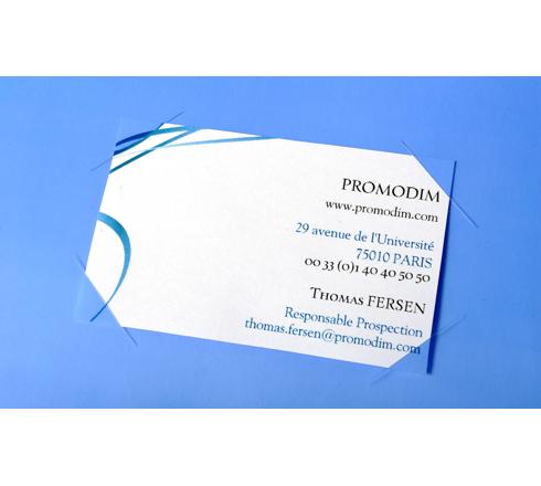 Mit Einkerbungen zur Befestigung einer Visitenkarte.