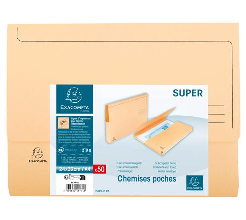 50ER PACKUNG DOKUMENTMAPPEN MIT VERSCHLUSSKAPPE SUPER 210, FÜR FORMAT DIN A4 - SAND