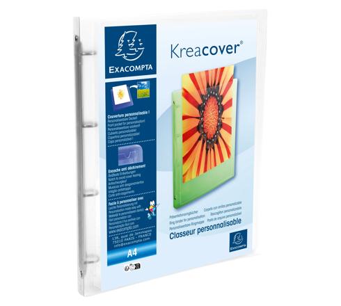 Kreacover ist die personalisierbare Ablageserie von Exacompta. Ringbuch mit transparenter Sichttasche auf der Vorderseite zur Personalisierung Ihrer Unterlagen.