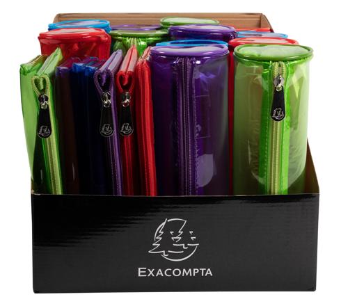 Das Display besteht aus 12 runden und 8 flachen Schlampermäppchen.