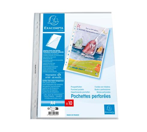 PACKUNG MIT 10 PROSPEKTHÜLLEN GELOCHT AUS GLATTEM PP 60µ, OBEN UND SEITLICH GEÖFFNET, FÜR FORMAT DIN A4 - KRISTALL