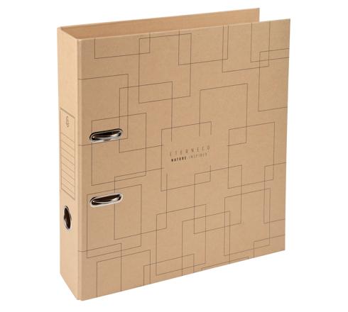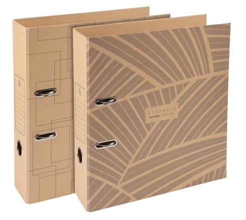Um das schlichte, natürliche Design zu bewahren, verfügt der Ordner Eterneco über kein aufgeklebtes Etikett, sondern ist am Rand mit einem Vordruck für die Kennzeichnung des Inhalts versehen, genauso wie mit einem Etikett.