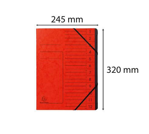 TRIEUR AGRAFÉ AVEC ÉLASTIQUES INTÉRIEUR NOIR 12 COMPARTIMENTS - A4 - ROUGE