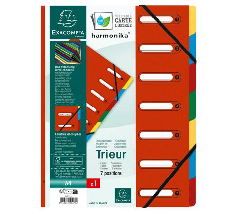 ORDNUNGSMAPPE HARMONIKA MIT AUSGESTANZTEN FENSTERN UND GUMMIZUG, AUS COLORSPAN-KARTON, 7 FÄCHER, FÜR DIN A4 - ROT