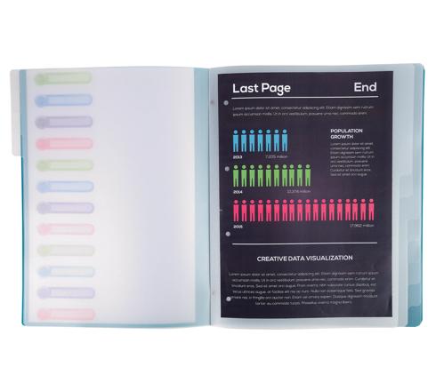 ORDNUNGSMAPPE OPAK AUS PP MIT 3 KLAPPEN UND 12 FÄCHERN - FARBEN SORTIERT