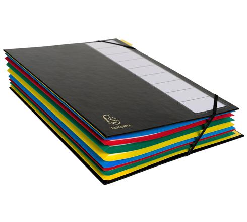 ORDNUNGSMAPPE MIT FESTEM DECKEL 3MM, GUMMIZUG UND DEHNBAREM FALTENRÜCKEN, 9 FÄCHER, ORDONATOR, FÜR FORMAT DIN A4 - FARBEN SORTIERT