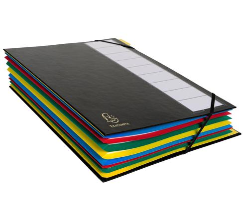 ORDNUNGSMAPPE MIT FESTEM DECKEL 3MM, GUMMIZUG UND DEHNBAREM FALTENRÜCKEN, 12 FÄCHER, ORDONATOR, FÜR FORMAT DIN A4 - FARBEN SORTIERT