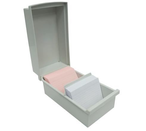 KARTEIKASTEN K MIT DECKEL, FÜR KARTEIKARTEN DIN A7 - LICHTGRAU