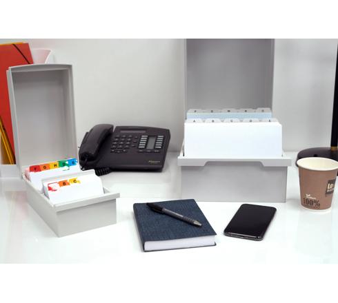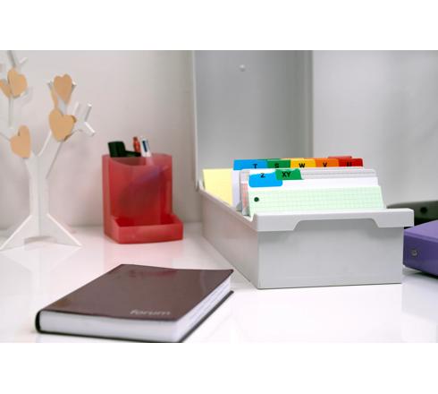 Inklusive 1 Trennplatte. Für bis zu 600 Karteikarten.