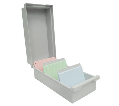 KARTEIKASTEN K MIT DECKEL, FÜR KARTEIKARTEN DIN A6 - LICHTGRAU