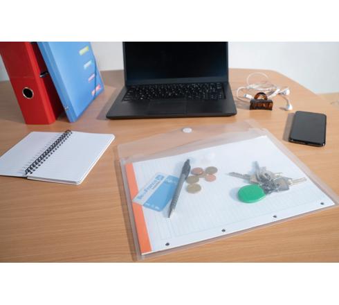 Cette pochette se ferme aisément grâce à sa fermeture scratch et offre ainsi une excellente protection des documents tous formats (maxi A4) ou petits objets (stylo, carnet, ?).