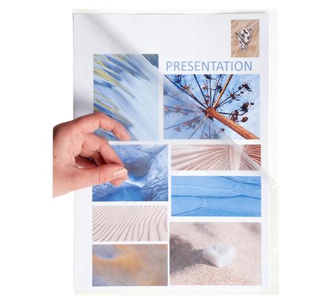 Hülle verschweißt auf ein Drittel der Höhe, zum einfachen Einfügen der Dokumenten und gleichzeitig für einen perfekten Halt.