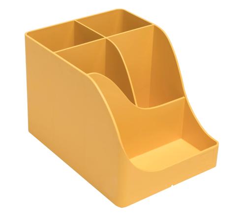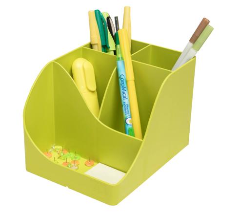 Mit seinen 5 unterschiedlich hohen Fächern bietet er viel Stauraum: 4 hohe Fächer für große Utensilien, Scheren, Stifte und 1 niedriges Fach für kleine Gegenstände wie Büroklammern, Reißzwecken, USB-Sticks oder sogar für Ihr Mobiltelefon.