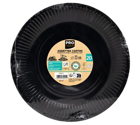 RUNDE PAPPTELLER, 20 STÜCK, Ø 23 CM, 100% PLASTIKFREI - SCHWARZ