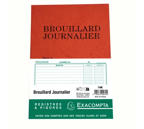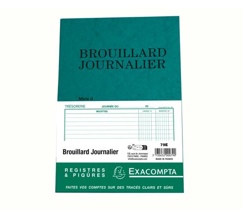 Le brouillard journalier est un livre de compte recettes-dépenses journalier utilisables par tous. Chaque page se divise en 3 parties : les recettes détaillées, les dépenses, et la situation de caisse avec le solde. En entête, est précisé la date du jour . Avec 40 pages, ce support permet d'établir les comptes pour 2 mois environ.