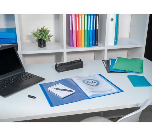 Mit Einband aus mittelstarken Polypropylen 500µ, matt strukturiert, gegen Flecken und gegen Kratzer, hat die Sichtmappe OPAK in Pre mium-Qualität.