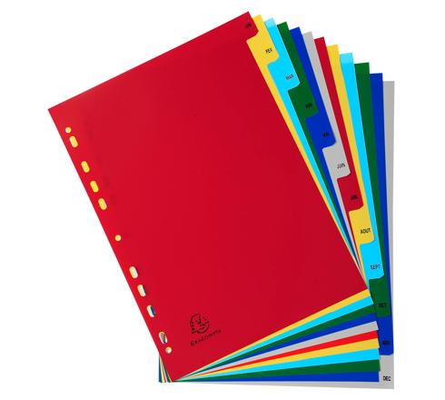 REGISTER FÜR ORDNER UND RINGBÜCHER, AUS PP, 12 POSITIONEN, TABEN JAN.-DEZ., FÜR DIN A4 - FARBEN SORTIERT