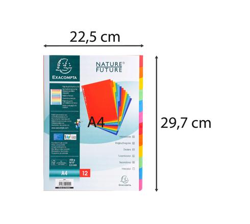 REGISTER A4, COLORSPAN-KARTON 400G, 12 TABEN - FARBEN SORTIERT