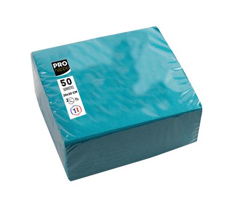 PACKUNG MIT 50 COCKTAIL-SERVIETTEN, MIKROGEPRÄGT, TISSUE, 2-LAGIG - 20X20CM - TÜRKIS