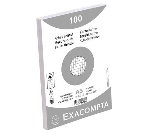 KARTEIKARTEN A5 KARIERT, 100 STÜCK EINGESCHWEISST - WEISS