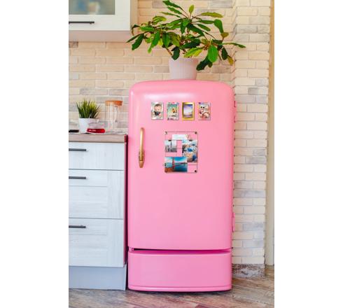 Dank ihrer magnetischen Ecken haftet die Fotoatfel an Metalloberflächen oder kann mit dem mitgelieferten Haken und dem Fixiernagel.