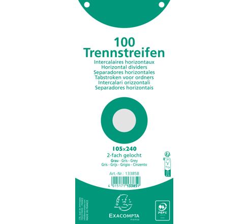 PACKUNG MIT 100 TRENNSTREIFEN, 2-FACH GELOCHT, PREMIUM-KARTON 180G, EINFARBIG, 105X240MM - GRAU