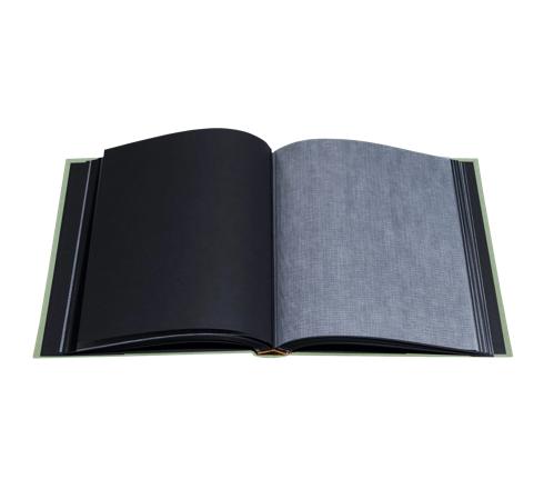 Die Seiten bestehen aus hochwertigem, schwarzem 250g/m2 starkem Recyclingkarton. Jede Seite ist durch ein Pergmaninzwischenblatt get rennt, das ein Abfärben der Fotos verhindert und eine optimale Archivierungsqualität über lange Zeit gewährleistet.