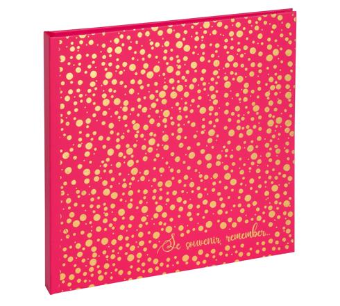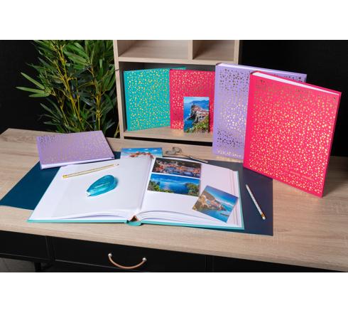Dieses farbenfrohe Fotoalbum bietet ein außergewöhnliches Design mit goldenen Punkten, die als Relief auf dem Einband eingeprägt sind. Der Einband ist mit einem leichten Schriftzug verziert und macht das Album Plum' perfekt, um die kostbaren Momente Ihres Lebens festzuhalten.