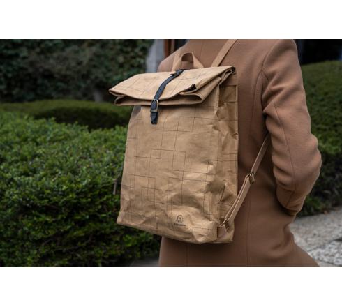 RUCKSACK 32X44X12CM AUS PAPIER IN LEDEROPTIK, SERIE ETERNECO - BRAUN GEOMETRISCHE MOTIVE