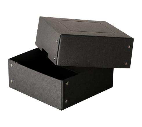 PURE Box Black - Schachteln bestehend aus Box und Deckel, mit klassischen Look aus schwarzer hochwertiger Pappe, sehr hohe Stabilität, genietet, Griffaussparung, Beschriftungsfeld, puristisch, ohne Plastik, ohne Folie, FSC®, Vegan und Blauer Engel zertifiziert - Made in Germany