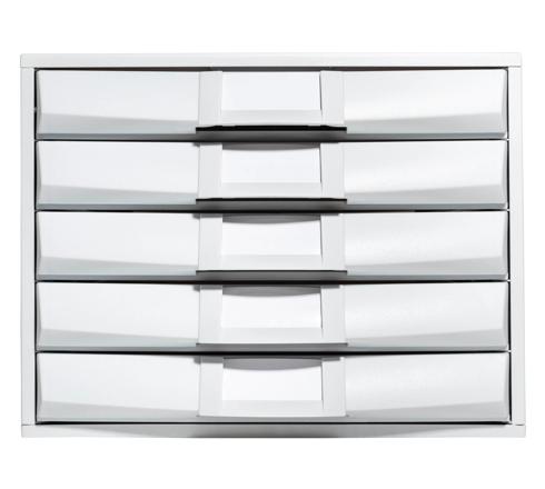 Die Schubladenbox The Box von Exacompta besteht aus 5 Schubladen, in denen Sie Dokumente im Format A4 und A4+, Sammelmappen mit Gummizug 24x32cm oder großformatige Umschläge ablegen können. Er ist für den Einsatz im Büro oder Home Office geeignet.