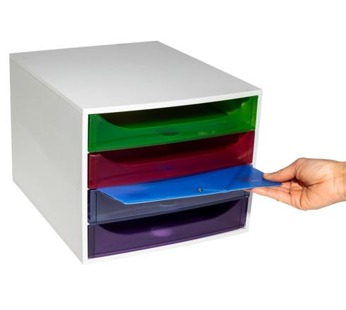 Diese Schubladenbox mit 4 Schubladen ist ideal für die Ablage von Dokumenten im Format A4 und A4+.