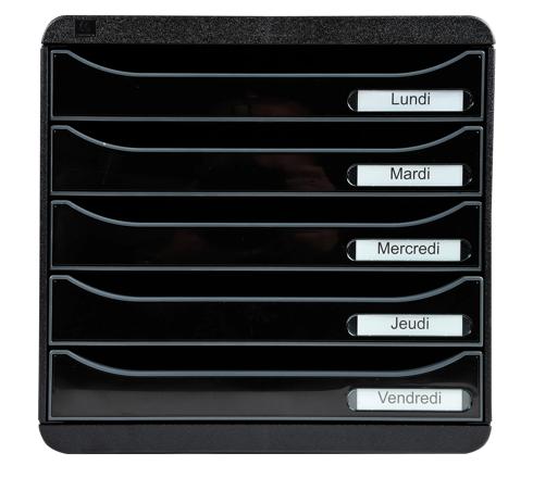 Die Schubladenbox Big Box Plus von Exacompta verfügt über 5 Schubladen, in denen Sie Dokumente im Format A4 und A4+, Sammelmappen mit Gummizug 24x32cm oder großformatige Umschläge ablegen können. Sie eignet sich für den Einsatz im Büro, Home Office oder in der Schule.
