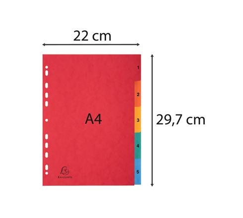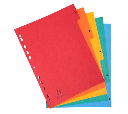 REGISTER A4, COLORSPAN-KARTON 225G, 5 TABEN 1-5 - FARBEN SORTIERT