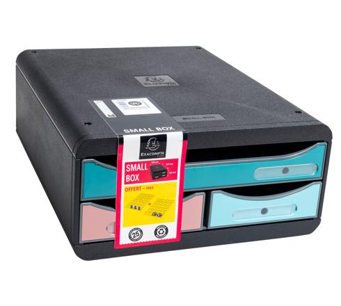 Die Small Box von Exacompta ist sehr vielseitig. Dort können Sie Dokumente und Sammelmappen bis Format A4+, aber auch kleinere Acces soires, Stifte, Haftnotizzettel, Kaffeekapseln, Teebeutel oder auch Servietten oder Taschentücher. Macht sich perfekt zuhause im Homeoffice oder im Büro.