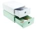 Top-Design kombiniert mit hoher ökologischen Verantwortung. Das Produkt wird aus weißem Kunststoff hergestellt, der aus Abfall stammt. Das Ablagemodul der Reihe AutentiK ist also ein Produkt, das gebrauchtem Kunststoff neues Leben einhaucht. Eine Innovation von Exacompta. Die Tiny Box mit skandinavischen Einflüssen ist in den Farben Weiß und Salbeigrün erhältlich und passt sieht sowohl dem Zuhause als auch dem Büro gut an.