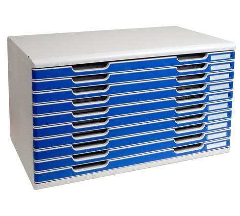 SCHUBLADENBOX MODULO A3, 10 GESCHLOSSENE LADEN - BLAU