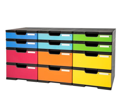 MODULODOC, 12 FÄCHER MIT SCHUBLADEN, ECOBLACK - REGENBOGEN