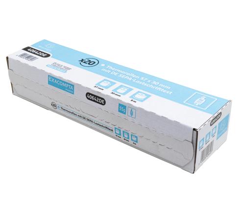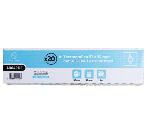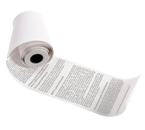 Diese Thermorollen sind auf der Rückseite mit einem deutschen Text für das SEPA-Lastschriftverfahren bedruckt.