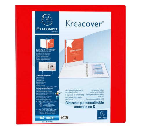 Kreacover ist die personalisierbare Ablageserie von Exacompta. Ringbuch aus Karton mit PP kaschiert. Mit transparenten Sichttaschen auf der Außenseite zur Personalisierung Ihrer Unterlagen. Sie befinden sich auf dem Deckel, der Rückseite und dem Rücken. Zusätzlich ist das Ringbuch mit 2 waagerechten Sichttaschen im Innenteil ausgestattet, in die einige lose Blätter abgelegt werden können.