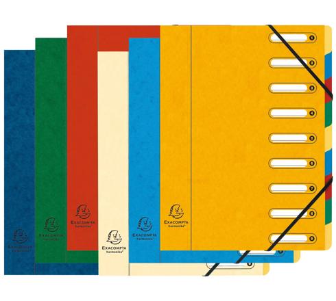 ORDNUNGSMAPPE HARMONIKA MIT AUSGESTANZTEN FENSTERN UND GUMMIZUG, AUS COLORSPAN-KARTON, 9 FÄCHER, FÜR DIN A4 - FARBEN SORTIERT