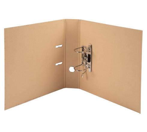 Der Ordner ist aus Recyclingkarton, mit Papier überzogen, das mit einer pflanzlichen Ölschicht beschichtet ist, durch die der Ordner wasserfest wird. Dies garantiert, dass der Ordner widerstandsfähig, langlebig und leicht zu recyceln ist, wenn man die Mechanik weglässt.