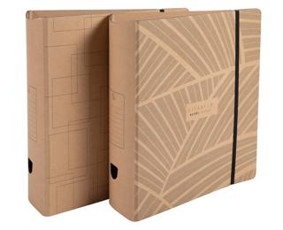 Ordner aus hochfestem Karton. Innen und außen mit gefärbtem, strukturierten Papierbezug.
