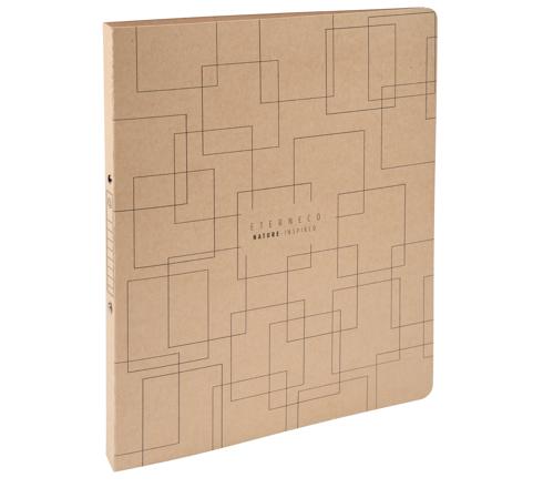 Der Einband dieses flexiblen Ringhefters ist aus einem Karton aus Neufasern und Papierresten. Der Karton ist mit einer pflanzlichen Ölschicht beschichtet, durch die der Karton wasserbeständig wird.