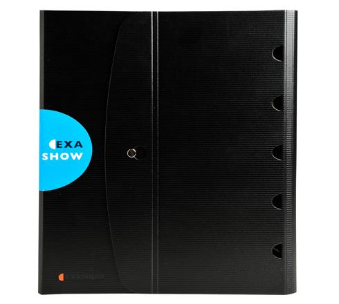 Exacompta Tischpräsentationssystem Exashow 56034E, für A4. Diese Mappe bietet alles für die perfekte Tischpräsentation. Stabile 4-D Ring-Mechanik, 30 mm. 5 spezielle Registertaschen. 25 Prospekthüllen sowie Innentaschen für CD und Visitenkarten. Farbe: Schwarz.