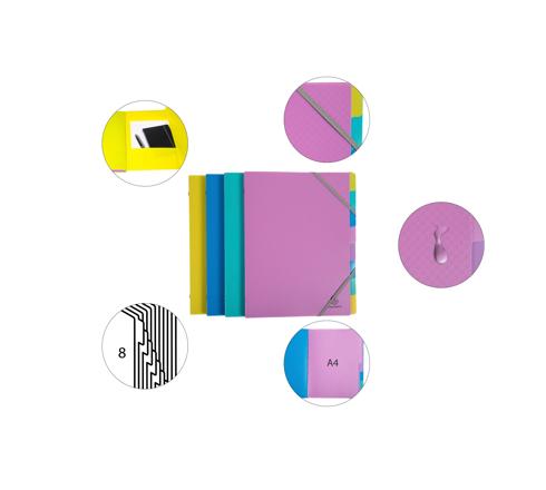 ORDNUNGSMAPPE FÜR A4 AUS POLYPROPYLEN MIT GUMMIZUG, 3 KLAPPEN UND 8 FÄCHERN, FOREVER YOUNG - FARBEN SORTIERT
