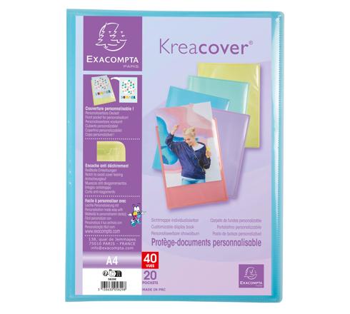 PROTÈGE-DOCUMENTS EN POLYPROPYLÈNE KREACOVER PASTEL 40 VUES - A4 - COULEURS ASSORTIES