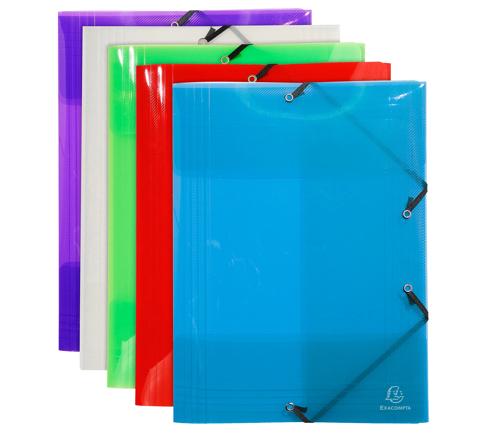 SAMMELMAPPE MIT 3 KLAPPEN UND GUMMIZUG AUS PP 500µ CRYSTAL COLOURS, FÜR FORMAT DIN A3 - FARBEN SORTIERT