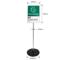 Für eine hohe Stabilität wurde der Fuß beschwert. Die Stange ist aus Aluminium 19 mm, das Schild aus hochwertigem und hochtransparenten PMMA (Acryl).