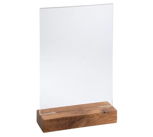 TISCHAUFSTELLER MIT HOLZSOCKEL A5 HOCHFORMAT - KRISTALL
